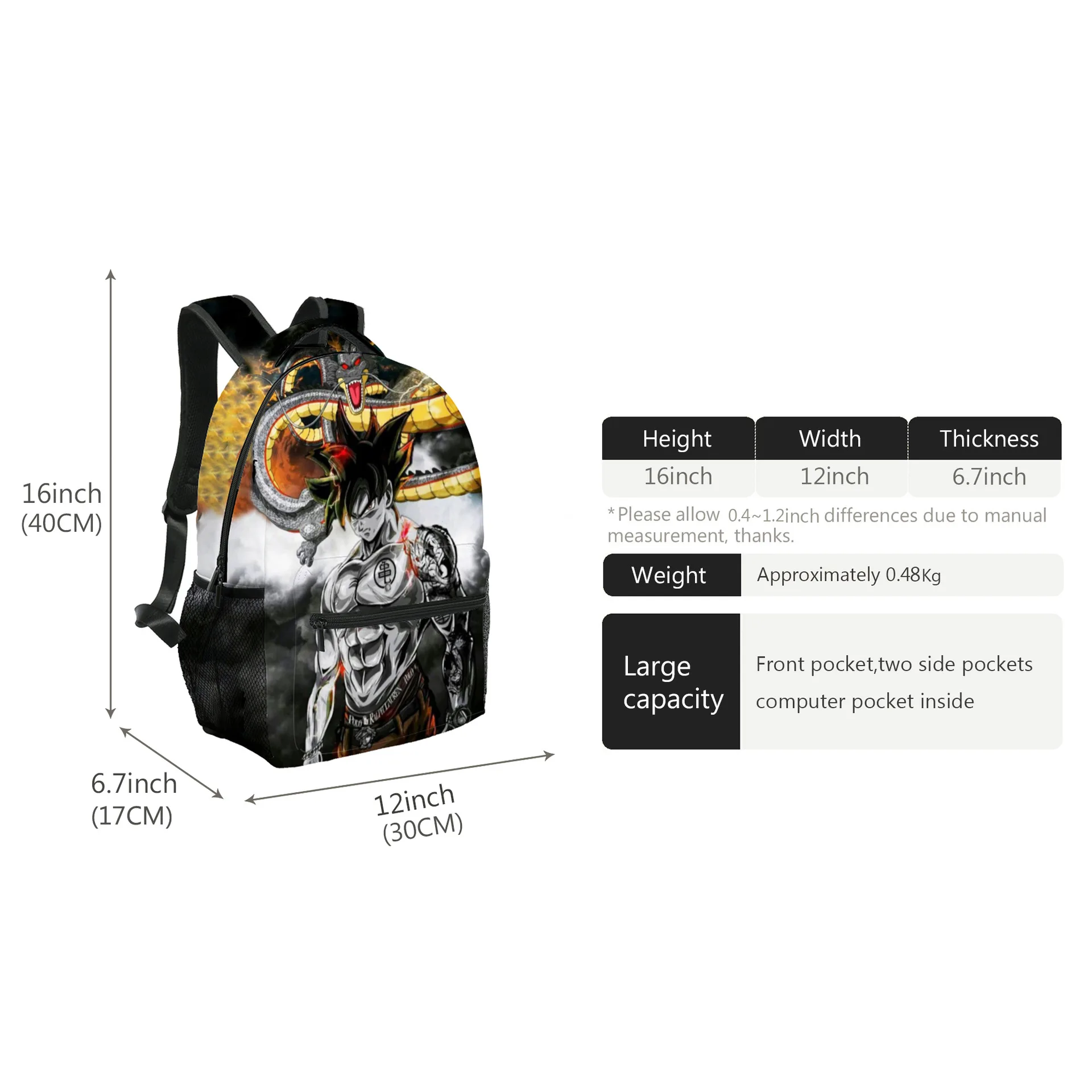 Der Goku Rucksack überzeugt durch ein geräumiges Hauptfach (passend für 15-Zoll-Laptops), ein organisiertes Frontfach mit Platz für Accessoires, verstellbare, gepolsterte Schulterträger und ein atmungsaktives Rückenpanel für maximalen Tragekomfort. Hergestellt aus robustem, wasserabweisendem Material, trotzt er Regen, Reibung und täglichem Gebrauch.